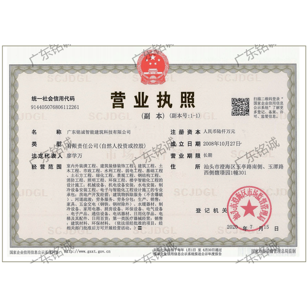 廣東銘誠(chéng)智能建筑科技有限公司成立于2008年,公司注冊(cè)資金為6000萬(wàn)元,集辦公裝修、酒店裝修、家庭裝修、軟裝裝飾、娛樂(lè)場(chǎng)所裝修為一體的裝飾公司,率先提出“創(chuàng)造現(xiàn)代人文空間,挑戰(zhàn)業(yè)界高峰”的雄壯口號(hào),并以此為目標(biāo),完成了一大批具有影響力的大型公裝工程:其中包括廣州國(guó)際中醫(yī)藥展貿(mào)中心、奧飛澄海音樂(lè)廳、澄海區(qū)國(guó)家稅務(wù)局、澄海興信小額貸款、澄海潮商村鎮(zhèn)銀行、汕頭龍湖賓館、澄海豪庭大酒店、御園國(guó)際飲食城、澄海福晉軒酒家、享樂(lè)匯保健有限公司、假日商務(wù)酒店、尚景康園物業(yè)、星輝車模股份有限公司、奧飛動(dòng)漫有限公司、香港國(guó)際玩具、汕頭萬(wàn)基貿(mào)易有限公司、泰興源實(shí)業(yè)有限公司、汕頭皇冠玩具有限公司等;家裝工程包括南澳黃金海岸整幢的精裝房、中信華府、富春華庭、金信鳳凰名城、凱旋花園、中信金城、柏嘉半島、陽(yáng)光海岸、金葉島等高等住宅。 ? 廣東銘誠(chéng)智能建筑科技有限公司經(jīng)過(guò)十余年的建筑裝飾裝修施工領(lǐng)域項(xiàng)目積淀,于2018年2月取得“建筑裝修裝飾工程專業(yè)承包二級(jí)”、“建筑機(jī)電安裝工程專業(yè)承包三級(jí)”、“建筑工程施工總承包三級(jí)”、“施工勞務(wù)不分等級(jí)”、“安全生產(chǎn)許可證”等專業(yè)資質(zhì),并于2021年8月建筑裝修資質(zhì)正式升級(jí)為“建筑裝修裝飾工程專業(yè)承包一級(jí)”。這是對(duì)企業(yè)規(guī)模、工程業(yè)績(jī)、管理水平、誠(chéng)信表現(xiàn)的肯定,是企業(yè)實(shí)力與能力的展現(xiàn)。 ? 公司每一項(xiàng)工程都始終堅(jiān)持“精美設(shè)計(jì)、精心施工、確保合同承諾;勤奮開拓、追求突出、創(chuàng)造時(shí)代精品”的質(zhì)量方針,力爭(zhēng)做一項(xiàng)工程,樹一座豐碑。 ? ?銘誠(chéng)擁有一支由專業(yè)的營(yíng)銷精英和客戶顧問(wèn)組成的營(yíng)銷隊(duì)伍,勤奮、敬業(yè)的每一位銘誠(chéng)員工將本著“贏在別人休息時(shí)”的專業(yè)精神,為客戶提供全程營(yíng)銷及售后服務(wù),確保客戶的合法利益,提供體貼周到的服務(wù),做到讓顧客滿意。 ? 銘誠(chéng)擁有一批資老牌室內(nèi)環(huán)境設(shè)計(jì)師,以“現(xiàn)代人文空間”為設(shè)計(jì)理念,為客戶提供人性化、差異化、智能化的室內(nèi)環(huán)境設(shè)計(jì)服務(wù),準(zhǔn)確的將人性化特點(diǎn)與室內(nèi)環(huán)境相融合,達(dá)到了“現(xiàn)代人文空間”的和諧統(tǒng)一。 ? ? ? ?自主創(chuàng)新、視社會(huì)責(zé)任為己任的精神使我們?cè)诎l(fā)展的道路上屢獲殊榮:不斷提升的銘誠(chéng)品牌知名度和美譽(yù)度,靠的是優(yōu)質(zhì)的產(chǎn)品,靠的是不斷提升的營(yíng)業(yè)績(jī),靠的是國(guó)內(nèi)的核心技術(shù)和誠(chéng)信的服務(wù)。相信通過(guò)銘誠(chéng)人的努力,銘誠(chéng)將會(huì)不斷以新的姿態(tài)為提升廣大消費(fèi)者的生活質(zhì)量做好服務(wù),為中國(guó)裝飾行業(yè)設(shè)計(jì)創(chuàng)新做出突出貢獻(xiàn)。 ? ? “忘掉競(jìng)爭(zhēng)、共